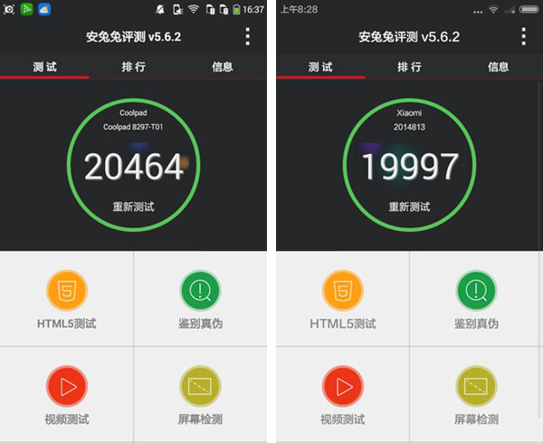 而从官方给出的鲁大师跑分来看,大神F1极速版鲁大师跑分为24269分,红米2的鲁大师跑分成绩为22387分,看得出来其实分数相差不大。