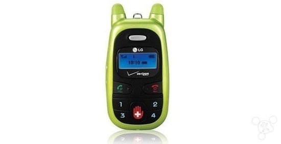 这是一款专门针对儿童设计的手机,拥有十分可爱的外观,尤其是两只竖起的耳朵。在机身上仅设有4个显而易见的快速拨号键按键,还有通话和挂断键,表面意思就是父母不希望儿童玩弄这款设备,因为机子本身也不支持网页浏览和首发信息。不过可以看到上面还设有一个紧急事件按钮,当需要时儿童可直呼父母。
