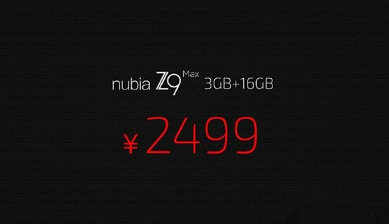 3GB RAM+16GB ROM组合的nubia Z9 Max,售价为2499元。