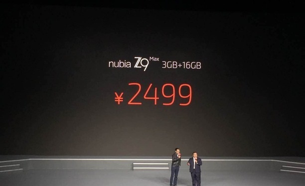 在发布会的最后,努比亚终于宣布大家期待已久的价格了,nubia Z9 Max售价2499元,如下图所示。