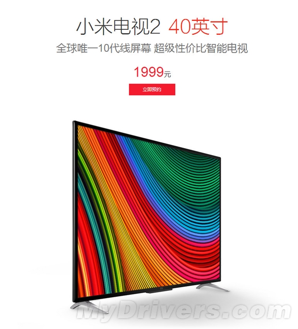顺便说一下,售价1999元的小米40寸新品电视将于今天中午12:00正式开卖,已经预约的用户到时可以抢购。购买地址:http://www.mi.com/mitv40/