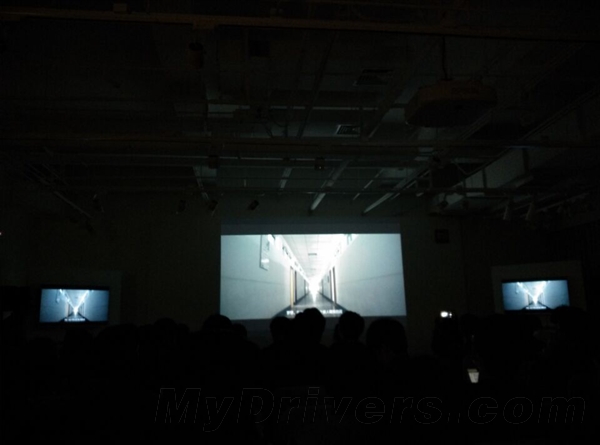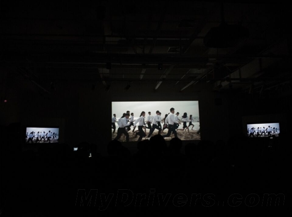 现场在播放宣传片。五周年主题,奔跑吧兄弟。