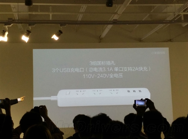 小米插线板提供3组国标插孔,3个USB充电口(总电流3.1A,单口支持2A快充),110V-240V全电压。