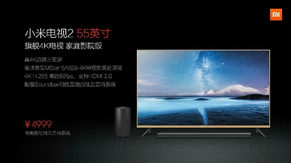 采用4K原装三星屏(分辨率3840x2160),全球首发Mstar 6A928旗舰处理器,支持HDMI 2.0,支持4K H.265 60Fps。配备独立音响系统,8扬声器Soundbar,铝合金低音炮。