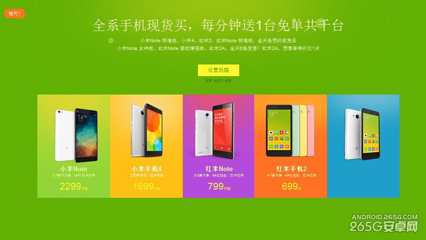6场整点发售产品:小米Note女神版、红米Note移动增强版、红米2A 移动版(特价仅1天)