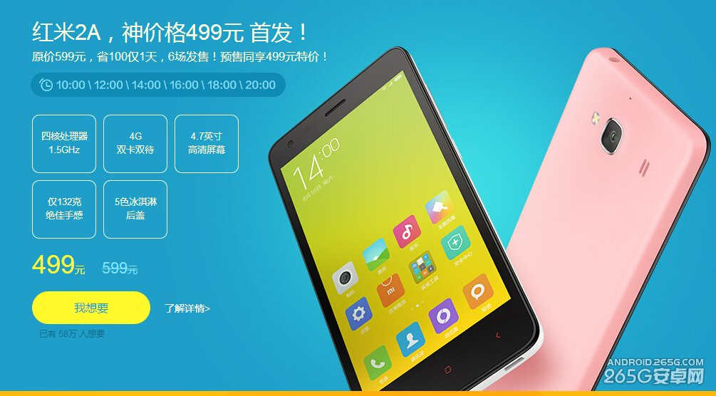 小米米粉节红米2A手机抢购时间和售价就为大家介绍到这里了,希望大家能抢到自己喜爱的手机哦。