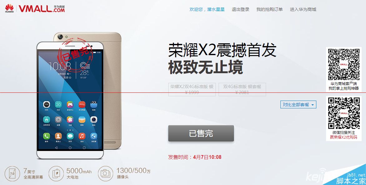 今日迎来上市首秀的荣耀X2,不负众望取得了闪电售罄的梦幻般开局,而如此亮丽的战绩表现,意味着其在打响荣耀2015年第一弹的道路上迈出了重要一步。4月7日10:08,全球首款7英寸超八核64位平板手机—荣耀X2面向百万量级预约用户,在华为商城、京东两大电商平台准时开售。一番荡气回肠的抢购大战之后,荣耀X2首战告捷极速售罄,其爆款本色展露无疑。不过,那些未能成功抢购的消费者也不要泄气,作为“408荣耀狂欢节 全球一起Go”活动的主力机型,荣耀X2将于次日—4月8日再度来袭,全天四大时段(00:00、10:08、16:00、20:00)面向消费者免预约开放发售。销售平台不变,将还是大家熟悉的华为商城与京东平台。