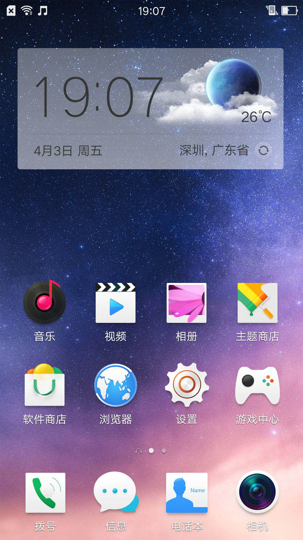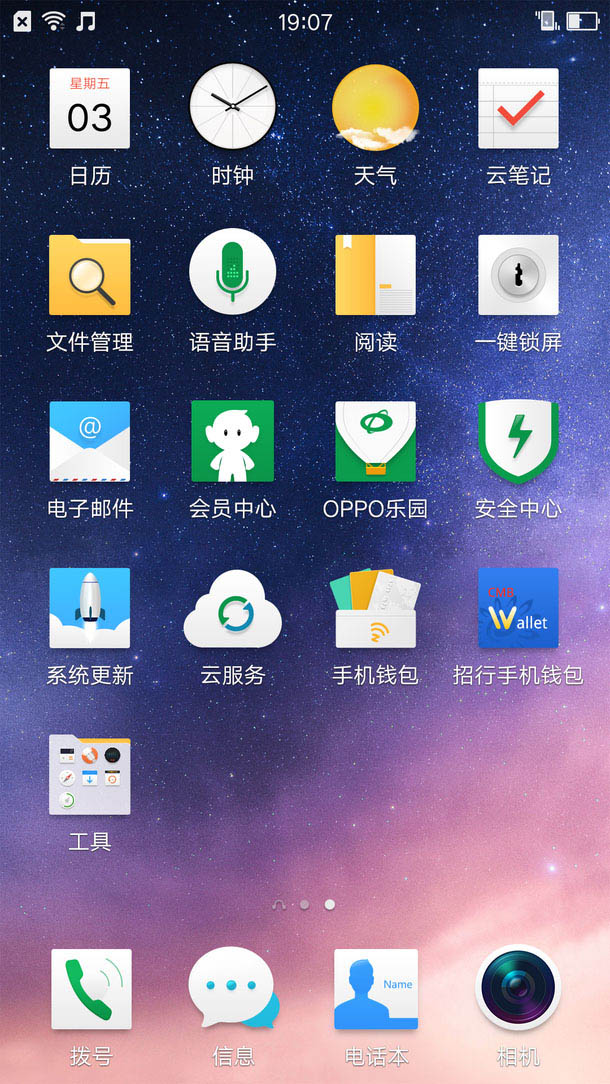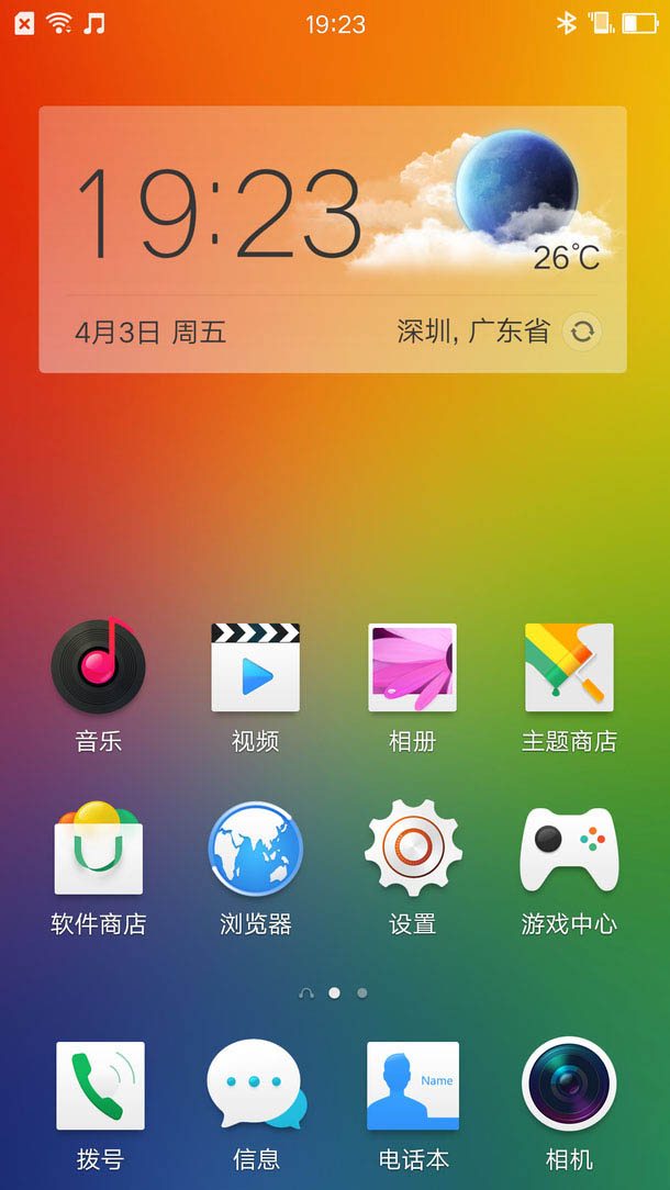 OPPO最新设计的Color OS V2.1版本正是出炉,全新的设计思路:直观、轻快、富有设计感。扁平化风行的今天,尽管Color OS依然延续了拟物化的设计,但图标更显整齐划一,此外也加入了大家喜闻乐见的毛玻璃效果,倒也给人一种清新而不落俗套的感觉。