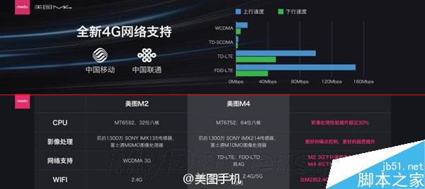 相比上代产品来说,美图手机M4在外观方面几乎没有什么区别,但配置有了不小的提升。具体来说,美图手机M4配备的是MT6752八核64位处理器,搭载4.7英寸720p显示屏,内置2GB内存和32GB机身存储空间,提供前后双1300万像素摄像头(均为索尼IMX214),支持移动联通的2G/3G/4G网络以及双频Wi-Fi。作为对比,上代产品虽然屏幕尺寸和分辨率相同,但搭载的是MT6592八核1.7GHz处理器,前后双1300万像素摄像头也是索尼上一代IMX135,同时不支持4G网络以及双频Wi-Fi。