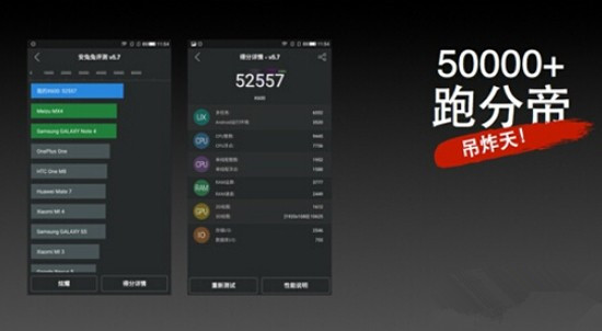 乐视超级手机1搭载联发科Helio X10手机芯片,采用64位真八核超高主频,史上最强大处理器之一;超大内存3GB+ IMG PowerVR 6200 GPU;移动联通双卡双待双4G。