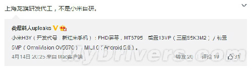 现在有网友在微博上爆料,小米正在研发的一款新机(上海龙旗研发代工,不是小米自研。)也搭载了MT6795八核,代号为H3Y(不是小米4i),是最新的红米手机。