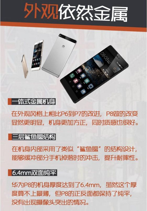 接下来我们就来了解一下华为P8手机的一些优点/亮点: