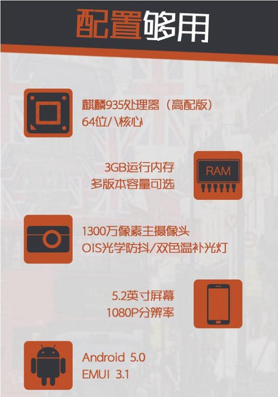 华为P8搭载了最新的麒麟935八核64位处理器,相比上一代麒麟八核处理器,性能提升20%。此外,华为P8还运行3GB大内存,拥有前置500万/后置1300万像素OIS光学防抖双色温摄像头,整体硬件也达到了旗舰机水平。