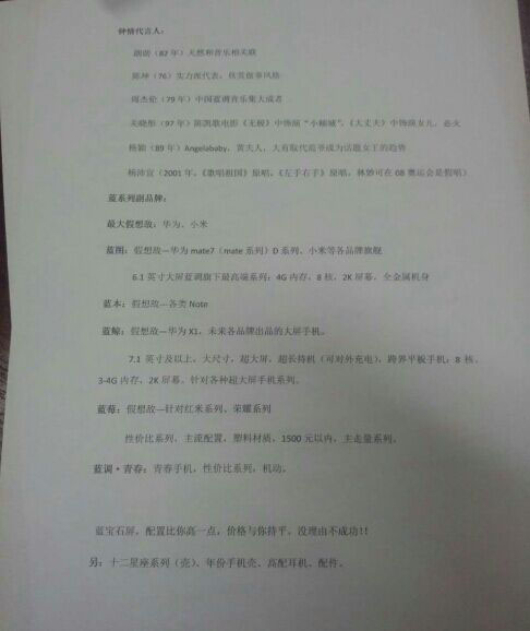 “构想”明白指明蓝调系列手机最大的假想敌是华为和小米,蓝系列包括蓝图、蓝本、蓝鲸、蓝莓、蓝调青春等5个副品牌。