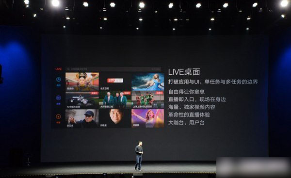 LIVE桌面就像一个视频直播界面,是横屏的桌面系统,进入后可以观看乐视网提供的视频直播内容,可以做到同时实时传输三路视频流,不过对于流量的消耗也较高。乐视还为各大明星和导演定制的专属的直播台。