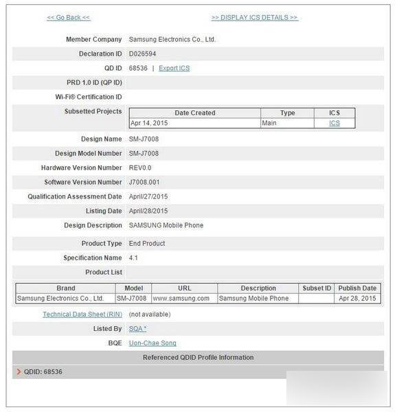 从此次蓝牙组织公布的认证信息显示,三星GALAXY J系列总共有两个型号及三个版本通过了认证。其中,三星GALAXY J5的检测型号分别为SM-J500F和SM-J500DS,分别代表该机的国际版本和双卡版本;而定位更高端的三星GALAXY J7的检测型号则为SM-J7008,从名称上来看似乎应该是该机的行货移动版本。