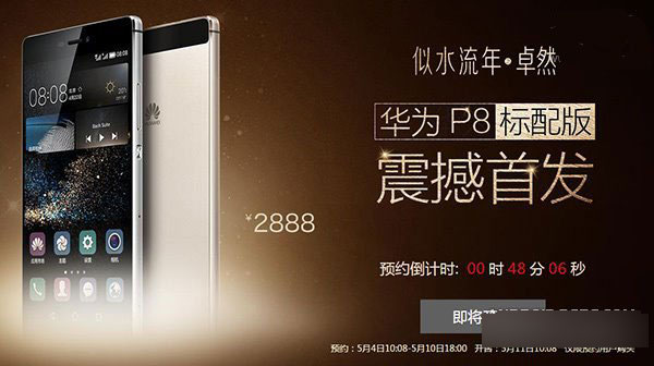 华为P8标准版今天早上10:08正式开启,售价为2888元,该机搭载海思麒麟930八核处理器,想要入手这款手机的朋友赶快去官网预约吧。