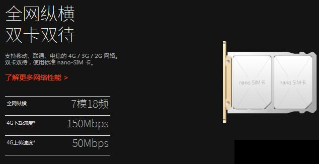 nubia Z9全网纵横,双卡双待,支持移动、联通、电信的 4G / 3G / 2G 网络。使用标准 nano-SIM 卡。