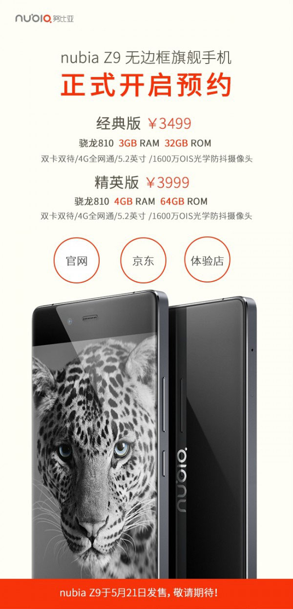 就在七天前,nubia在北京召开发布会,宣布了国产首款视觉无边框手机nubia Z9。之前,官方公布的开卖时间是5月21日,目前正在官网和京东预售。而来自努比亚官方微博的最新消息称,在本月15号(本周五)上午10点,nubia Z9将面向全球限量发售500台工程纪念机。nubia称,其硬件配置、软件版本均与量产版基本一致,价格依然是3499元。