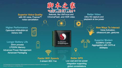 另外在内存方面则是双通道32位的LPDDR4,带宽为24.88GB/s,并且还支持H.265/HEVC格式硬件解码,可实现最高4K分辨率、30fps帧率的支持。网络方面依旧整合基带支持LTE Cat.9 300Mbps,但已经使用新的RF360射频方案,并且还支持802.11n/ac WiFi以及Quick Charge 2.0快速充电技术,最大电流为3A。