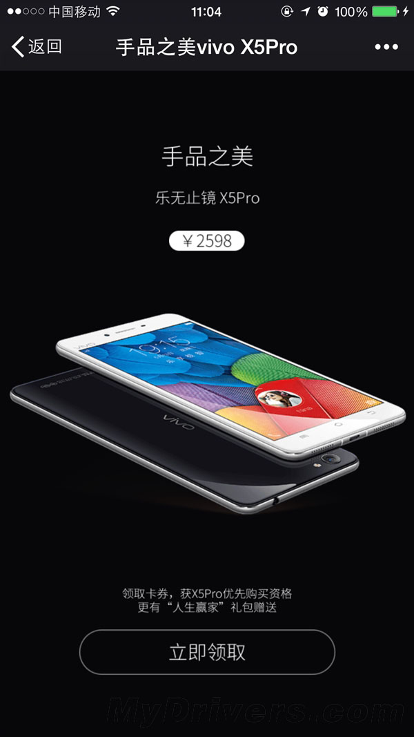 现在微信的朋友圈vivo的广告来了,这款X5Pro的售价是2598元,正式发货时间为5月25日。