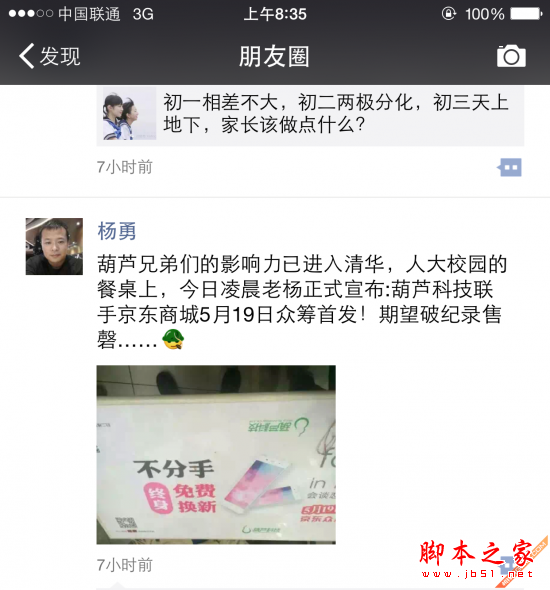 近日,葫芦手机CEO杨勇发布了一条朋友圈,宣布葫芦科技联手京东商城5月19日众筹上线!