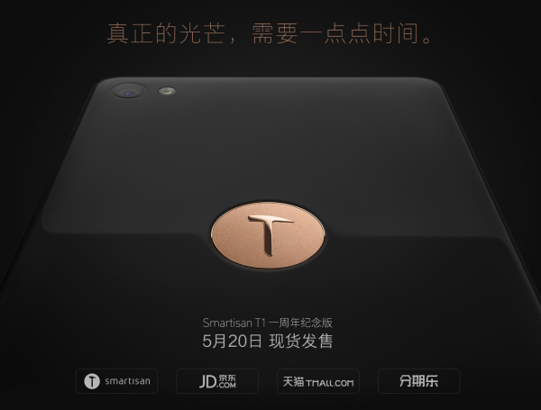 今天上午10点整,Smartisan T1一周年纪念版在锤子科技官方网站、锤子科技天猫旗舰店上架,稍后也将在京东商城、分期乐商城销售。