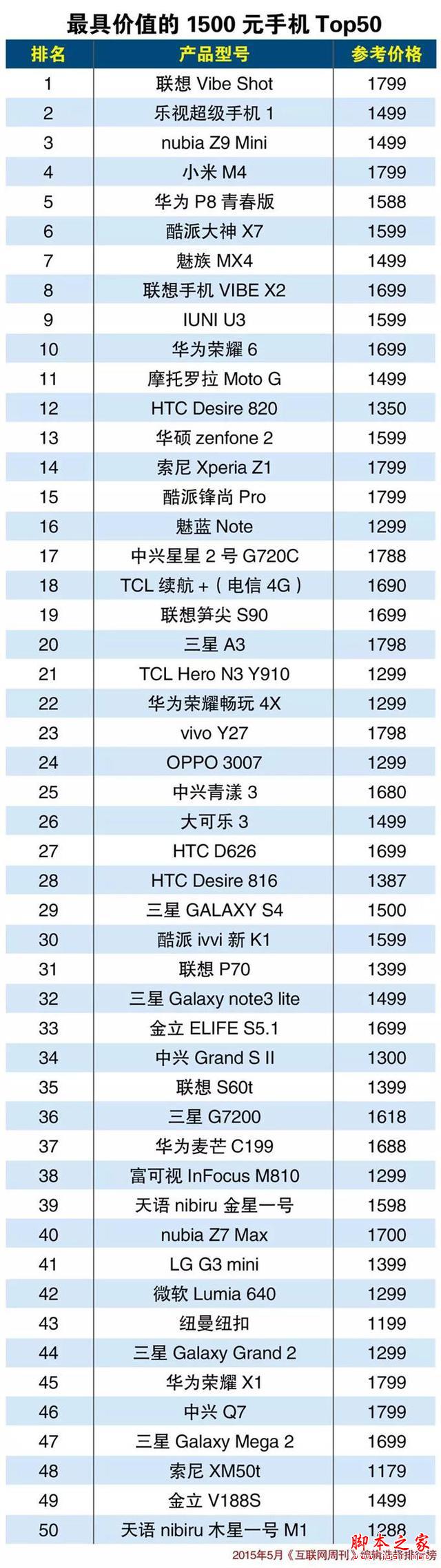 市售机型上万款,不同价位从低到高应有尽有,对于祖国大地一般群众来说,1500元左右的手机是最具性价比,最适合日常使用的手机。近日,某周刊杂志将位于1500元价格段的产品进行精选,并从产品的设计到产品价格,按手机的物有所值程度进行排名,排出了1500元档最具价值的手机Top50,对于下面这样的结果你满意么?会参考购买么?
