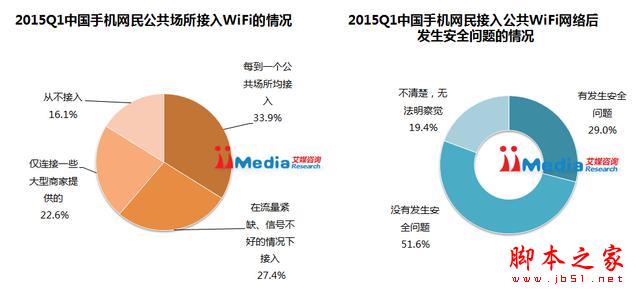 据艾媒咨询近日发布的《2015Q1中国手机安全应用研究报告》显示,接入公共WiFi已经成为近半数人认为最容易产生安全问题的头号危险,次之为接到不明电话或短信,第三位为使用手机进行购物和支付时。