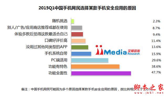 而在选择手机安全应用上,功能是否全面已经成了网民的首要考虑因素。