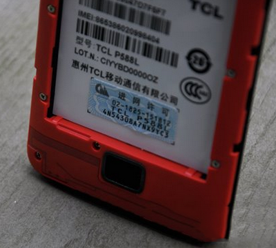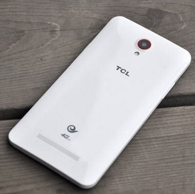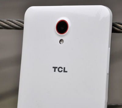 ▲TCL乐玩背面采用了亮面烤漆处理,表面处理工艺一般,倾斜情况下可见一些表面不平的现象。