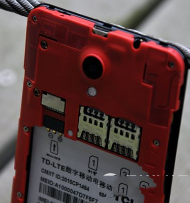 ▲打开后盖可以发现,乐玩手机的整个中框都使用了红色设计,十分亮眼,电池容量为2000mAh。