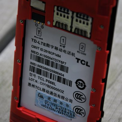 ▲TCL乐玩手机的两个SIM卡槽,1号卡槽支持电信4G网络,2号卡槽仅支持GSM网络(移动\联通2G网络)。