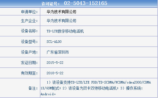 有关华为荣耀新机的发布还有一段时间,大家都把关注度转移到了华为即将可能发布的华为荣耀7手机。但今天我们在工信部发现,华为的一款廉价新机型正在工信部悄然上线并获得了入网许可。