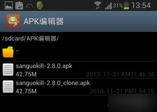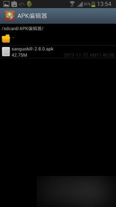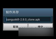 下面我们就进入正题,告诉大家如何修改可共存的应用程序。完成了准备工作之后,我们打开已经安装好的APK编辑器,这个编辑器的界面看起来就像一个文件管理工具,在编辑器里找到我们要修改的应用程序APK文件,本人就以近一段时间一直在玩的游戏《三国KILL》为例进行演示。在APK文件上长按,之后在弹出的菜单中选择“制作共存”。