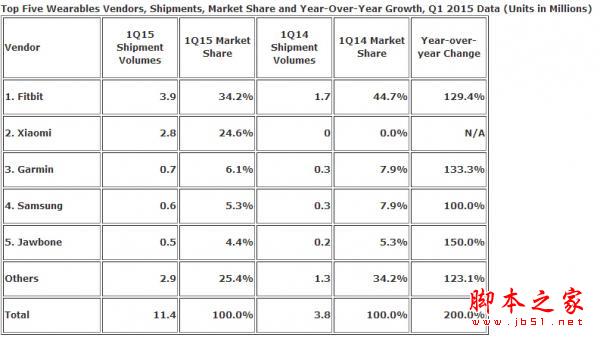 上图为IDC最新公布的数据,从数据来分析,在今年第一季度小米推出的可穿戴设备占了全球24.6%的市场份额,出货量高达280万件之多,这依靠的仅仅是一个小米手环,从推出到目前还不到一年的时间,小米手环就已经爬升到了全球第二的位置,这样的速度以及销量让我们降压不已。