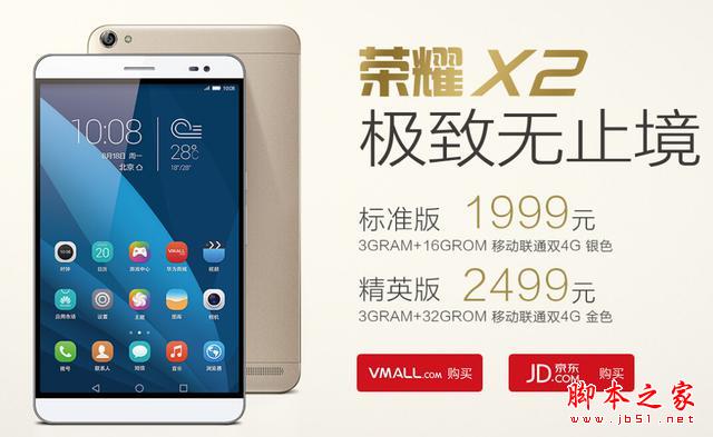 其实荣耀X2分为两个版本,分别为标准版和精英版。在配置方面标准版为16G ROM,而精英版为32G ROM。而在机身配色方面标准版为月光银色,精英版为香槟金色。