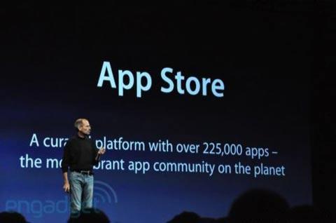在演讲中谈到电脑软件时,乔布斯批判了当时主流的软件购买渠道(其实也是当时唯一的渠道)的缺陷。他这样描述:“你去买(软件)但是你又不知道应该买什么的时候,你就会去问电脑经销商:‘我应该买哪个?’但是那个经销商也不知道。他们很会卖电脑,但是不懂软件。所以他们给你推荐了坨狗屎,然后你买了,用得爽不爽那就很说不定了。相比之下买磁带爽多了。绝大多数人走进磁带商店的时候都非常清楚自己要买什么。他们不会去问店员,‘我应该买个什么磁带?’大家知道要买什么是因为我们有电台,有免费的试听,所以我们在走进磁带店前就已经决定好要买什么了。我们在软件上需要同样的模式。我们需要一个软件的‘电台’。我们也许会利用电话线来解决这一切……直接从一台电脑到另一台电脑。到时候,也许会有这样的对话:‘我们给你提供30秒的免费试用,或者5次点击机会,或者你可以玩上1天。如果你想买它,输入你的VISA卡号吧。’我还不知道我们应该如何做到这一切,但是我坚信我们需要这样的‘电台’。”