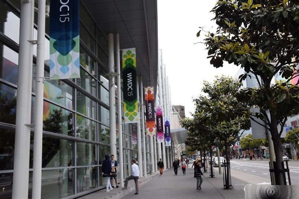跟以往不同的是,苹果本次的WWDC低调很多,为什么这么说?因为从现场的图看,宣传低调太多,相比起没iOS 7、iOS 8时的开发者大会,硕大的“7”和“8”被他们用足够大的宣传画来提醒用户新系统的亮相,这跟今年形成了强烈的对比。