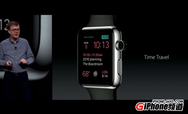 从现场的看板来看,苹果手表的Watch OS被放在了与iOS和OS X等同的地位。