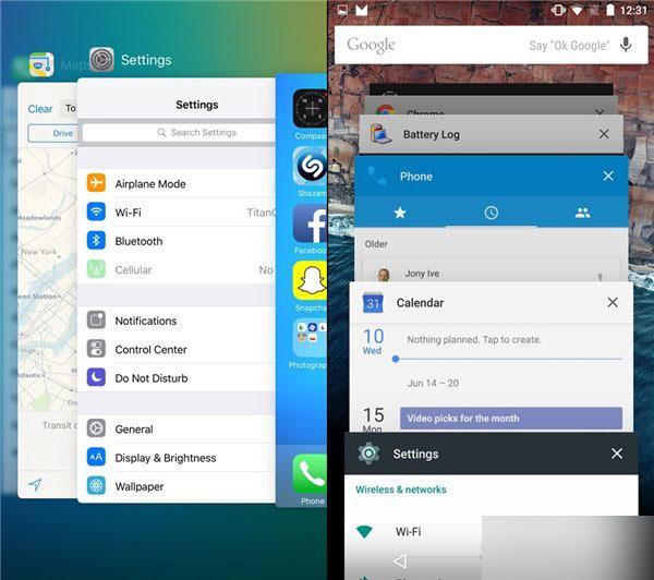 苹果的iOS和谷歌的安卓是目前最大的两个手机操作系统阵营,在过去人们也常常将iOS和安卓放在一起做比较。随着iOS9的发布,人们忽然发现iOS和安卓越来越相似了,下面就让我们近距离的来观察一下iOS9和安卓5.0的异同。