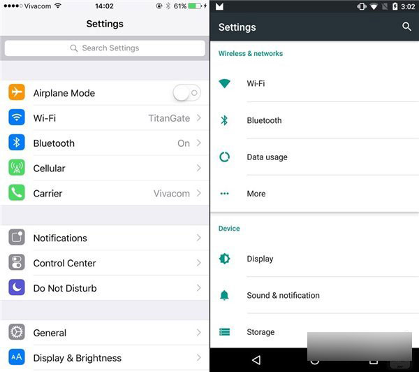 设置:即将到来的安卓5.0在设置上的变化很多,它将使用全新的暗黑风格主题,改进的内存管理页面,菜单页面层次上的微调等。而iOS9也在设置顶部加入了一个搜索条,并带来了更好的通知、电池以及续航管理功能。