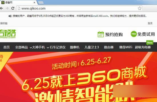 奇酷网(www.qikoo.com)今日发布公告称,将于6月25日0点起正式更名为360商城,并启用全新域名mall.360.com。据知情人士称,原奇酷(www.qikoo.com)将作为未来奇酷手机官方网站来使用。