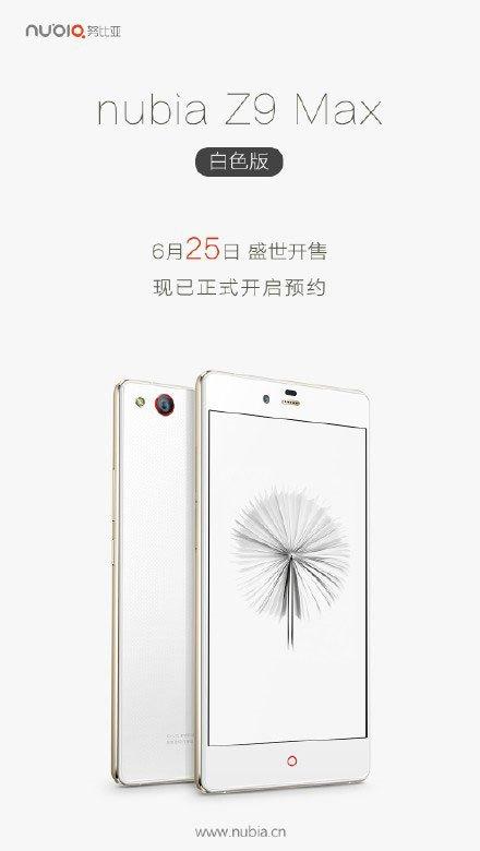 据悉,白色版nubia Z9 Max现在已经在努比亚官网、京东商城开启预约,6月25日正式开售。喜欢的朋友不妨关注一下。