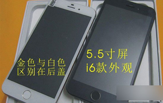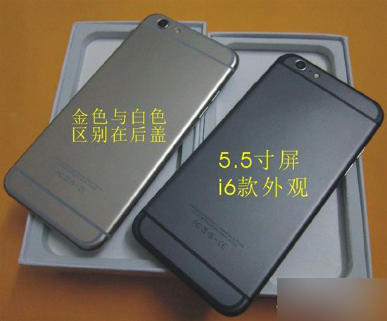外观方面,iPhone6 Plus又被抄得一塌糊涂,5.5寸屏幕、Home键盘、背部“白带”和凸起摄像头都在,厚度也相仿,喇叭开孔也在底部,并有黑、银白、土豪金三种色调,号称采用高发光金属侧键加磨砂抛光后盖,实在很敬业。