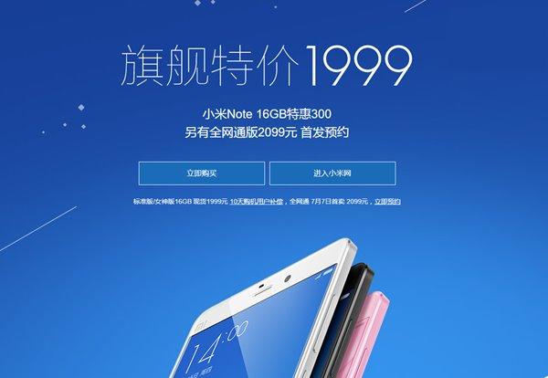 果不其然,小米今天同时宣布现款小米Note降价,小米Note标准版16GB版、天然竹版、女神版统一降价到1999元,而且现货供应。