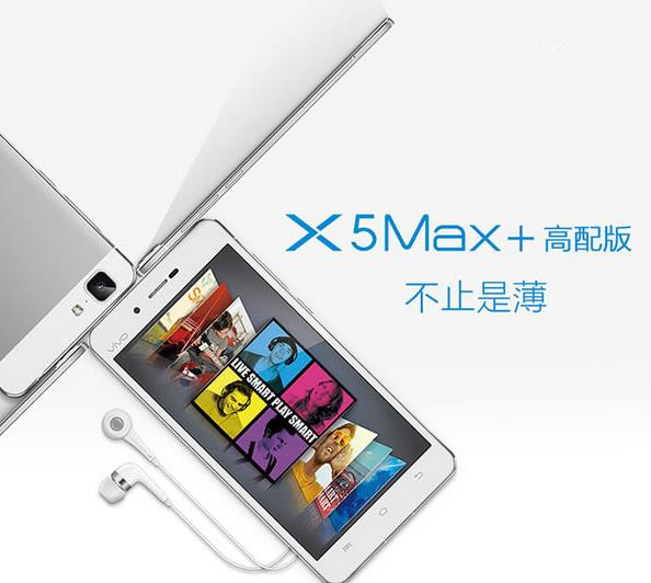 vivo X5 Max+配置5.5英寸1920*1080分辨率屏幕、64位八核1.7GHz处理器、3GB内存、32GB机身存储、前置500万像素摄像头、后置1300万像素6P摄像头(F2.0光圈)、电池2300mAh。