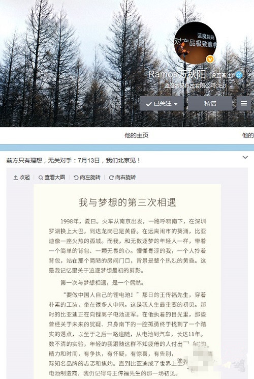 蓝魔CEO万秋阳微博长文《我与梦想的第三次相遇》