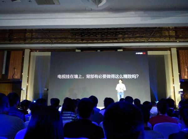 电视挂在墙上,背部有必要做这么精致吗?雷军称,无论从哪个方向看,都要像艺术品一样。