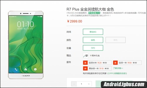 据悉,OPPO R7 Plus(移动4G版)今日已经正式开卖,售价2999元起。用户可在OPPO官方商城、京东商城、天猫OPPO手机官方旗舰店等线上平台,或者直接前往线下OPPO体验店和手机卖场选购。